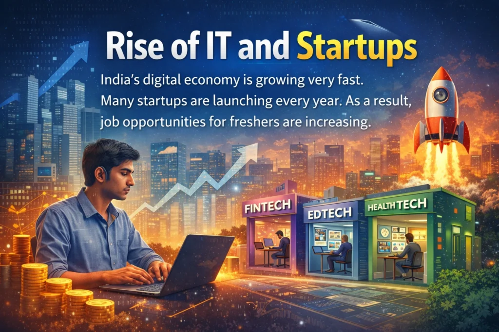 India’s digital economy is growing very fast. Many startups are launching every year. As a result, job opportunities for freshers are increasing.